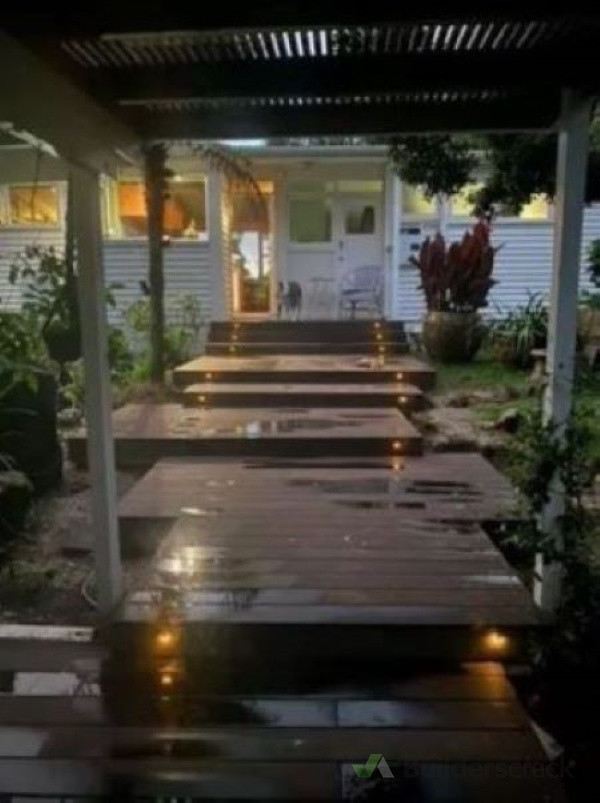 Bamboo decking built to wrap around existing steps while creating "floating islands"
