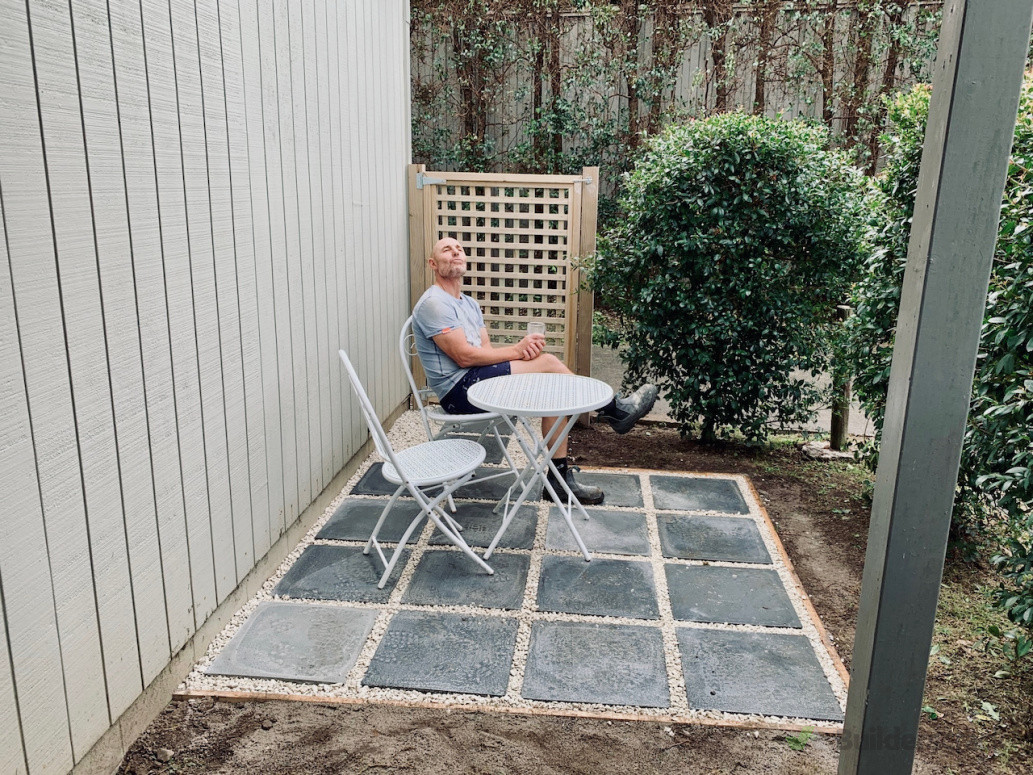 Created a boxed and paved garden patio area. Installed a new gate for access.