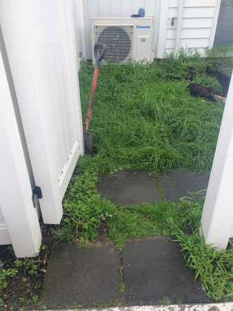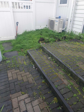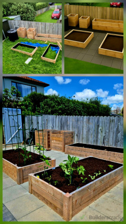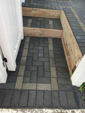 Sleepers added to create amazing garden beds, pebbles and steppingstones to create a low maintenance pathway.